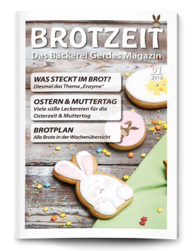 Wir setzen diesmal unsere Serie über Inhaltsstoffen in Backwaren fort und widmen uns speziell dem Thema "Enzyme". Außerdem haben wir unseren Brotplan für Sie hinzugefügt und stellen Ihnen unser Ostersortiment vor.