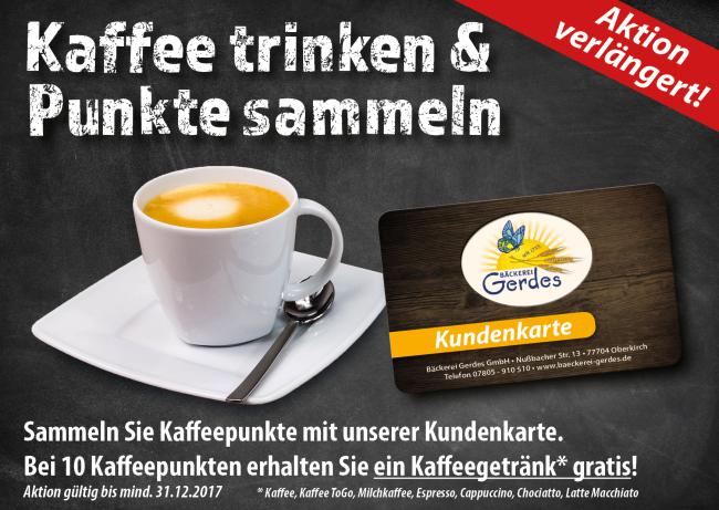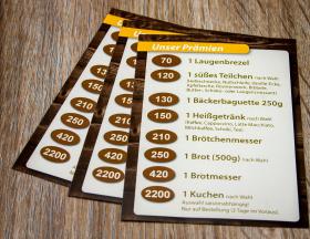 Seit Anfang des Jahres können Sie mit unserer Kundenkarte für jedes gekaufte Kaffeegetränk Punkte sammeln. Haben Sie 10 Punkte erreicht erhalten Sie den nächsten Kaffee gratis.